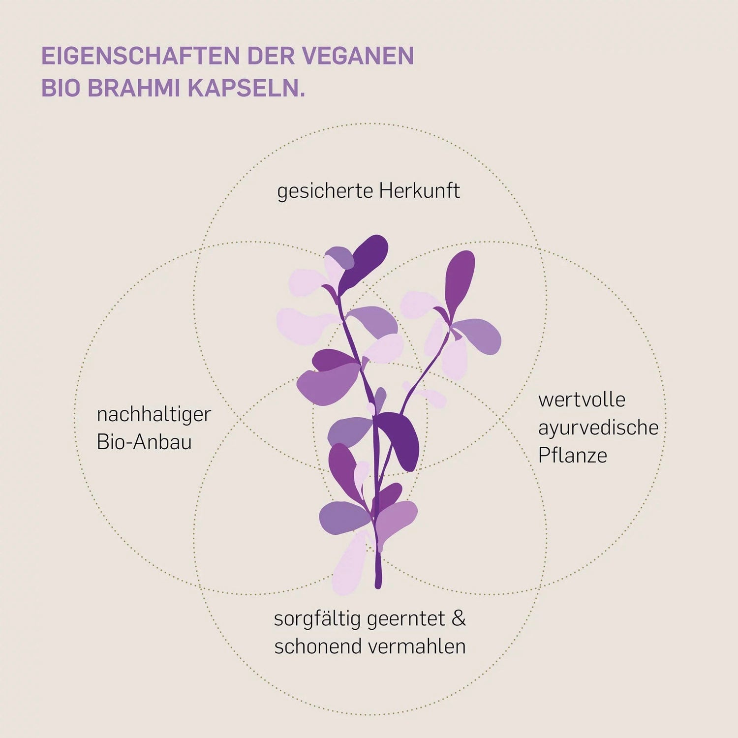 Die zarte Wasserpflanze enthält wertvolle sekundäre Pflanzenstoffe, insbesondere Bacoside, die als bioaktive Bestandteile des Brahmi-Pulvers gelten. In unseren Kapseln steckt ausschließlich reines, biologisch angebautes Brahmi-Pulver, das schonend getrocknet und vermahlen wird, um das natürliche Nährstoffspektrum vollständig zu erhalten.