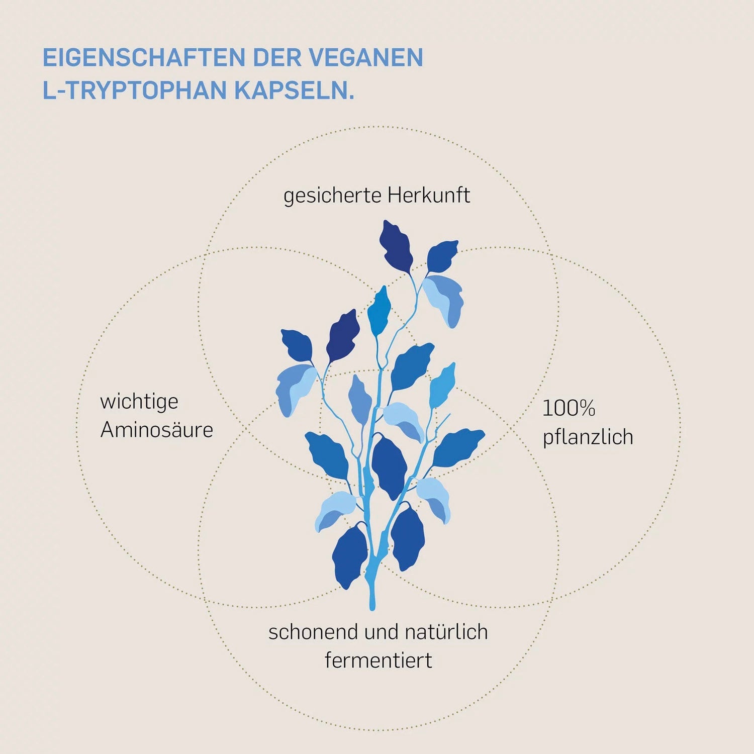 L-Tryptophan ist eine essentielle Aminosäure, die der Körper nicht selbst herstellen kann. Sie muss daher über die Nahrung oder Nahrungsergänzungsmittel aufgenommen werden. Tryptophan ist Bestandteil vieler Proteine und kommt in Lebensmitteln wie Nüssen, Bananen oder Hülsenfrüchten vor.