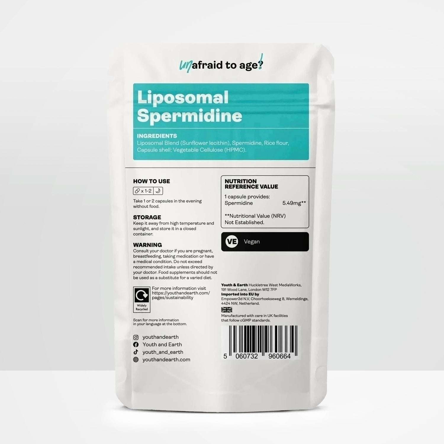 Mit zunehmendem Alter sinkt der körpereigene Spermidinspiegel deutlich, wodurch die Fähigkeit der Zellen, sich selbst zu regenerieren, nachlässt. Der mikrofein verkapselte liposomale Spermidin-Komplex von Youth & Earth sorgt für eine besonders hohe Bioverfügbarkeit und kann helfen, die natürlichen Erneuerungsprozesse des Körpers zu unterstützen.