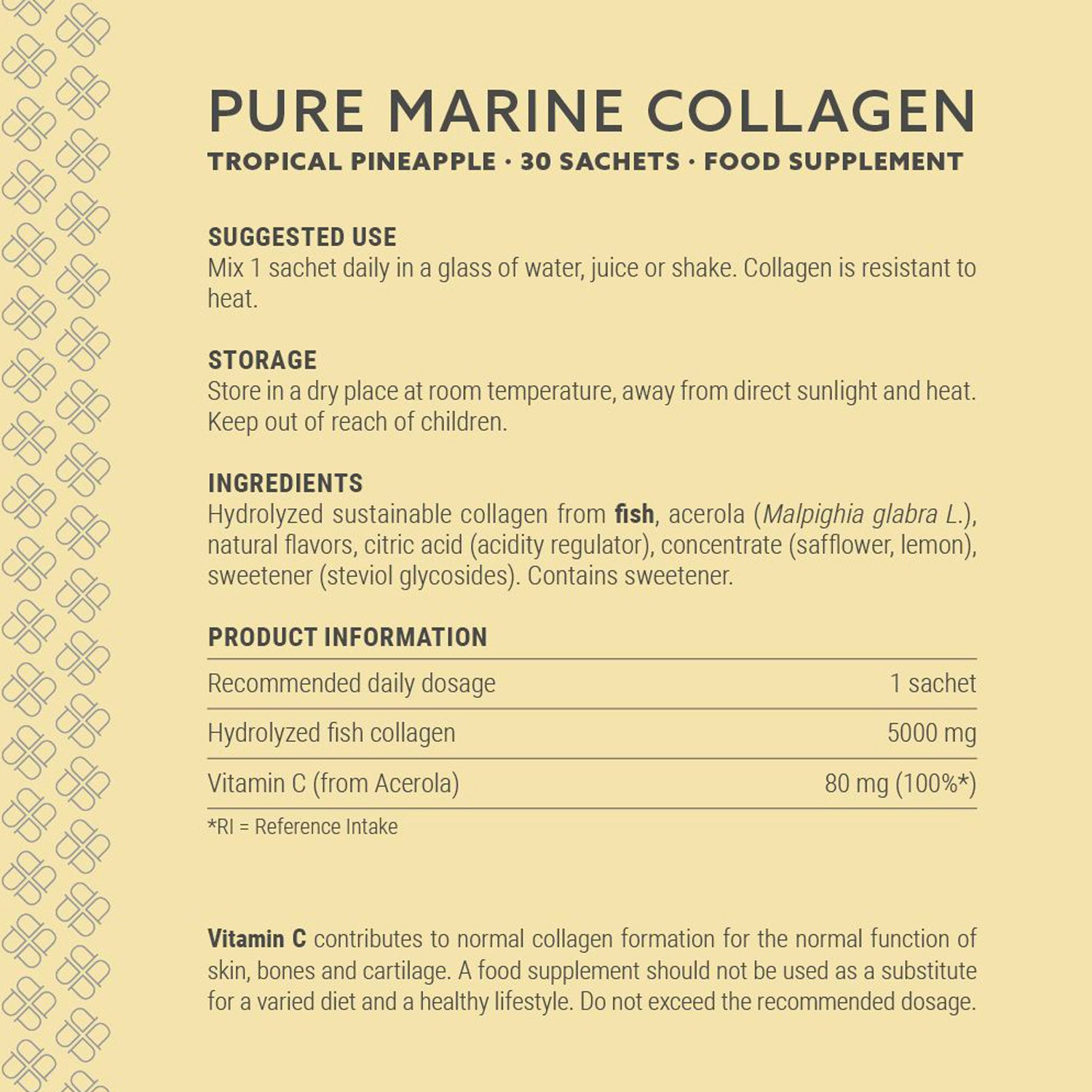 Pure Marine Collagen Tropical Pineapple von Plent kombiniert hydrolysiertes, ASC-zertifiziertes Fischkollagen (Naticol®) mit natürlichem Vitamin C aus Acerola und einem erfrischend fruchtigen Ananasgeschmack.