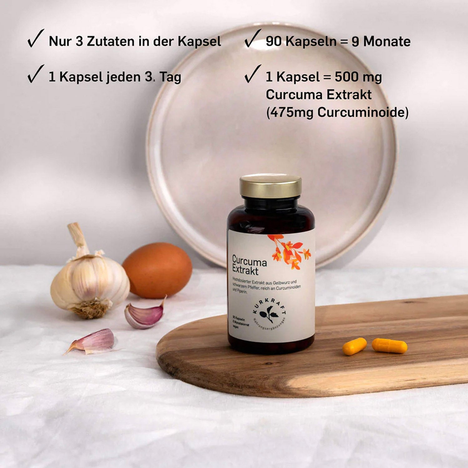 Die Kombination aus hochwertigem Curcuma-Extrakt und natürlichem Pfeffer-Extrakt bietet eine kraftvolle Unterstützung für Immunsystem, Zellschutz und allgemeines Wohlbefinden.