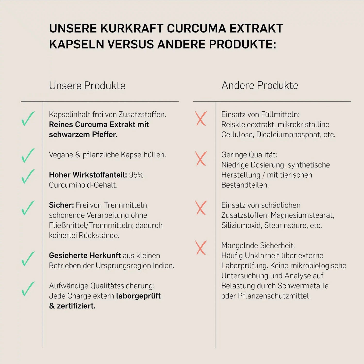Die Curcuma-Wurzeln stammen aus nachhaltigem Anbau in Indien – der weltweit führenden Region für hochwertigen Gelbwurz. Das Extrakt wird schonend verarbeitet und regelmäßig in deutschen Laboren geprüft. Die Kapseln sind vegan, frei von Füll- und Zusatzstoffen und in pflanzlicher Hülle abgefüllt.