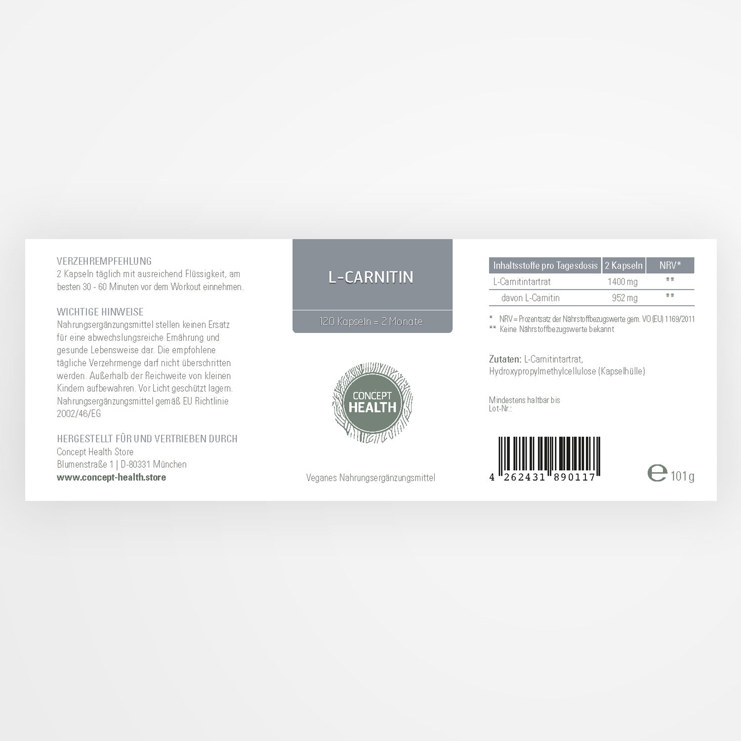 Das in CONCEPT HEALTH L-Carnitin verwendete Carnitin stammt aus pflanzlicher Quelle und wird in einem schonenden, kontrollierten Herstellungsprozess gewonnen – ohne tierische Bestandteile und frei von Gentechnik. Wir setzen bewusst auf verantwortungsvollen Rohstoffbezug, transparente Lieferketten und eine umweltschonende Herstellung – für ein Produkt, das nicht nur deiner Gesundheit dient, sondern auch im Einklang mit Natur und Zukunftsfähigkeit steht.