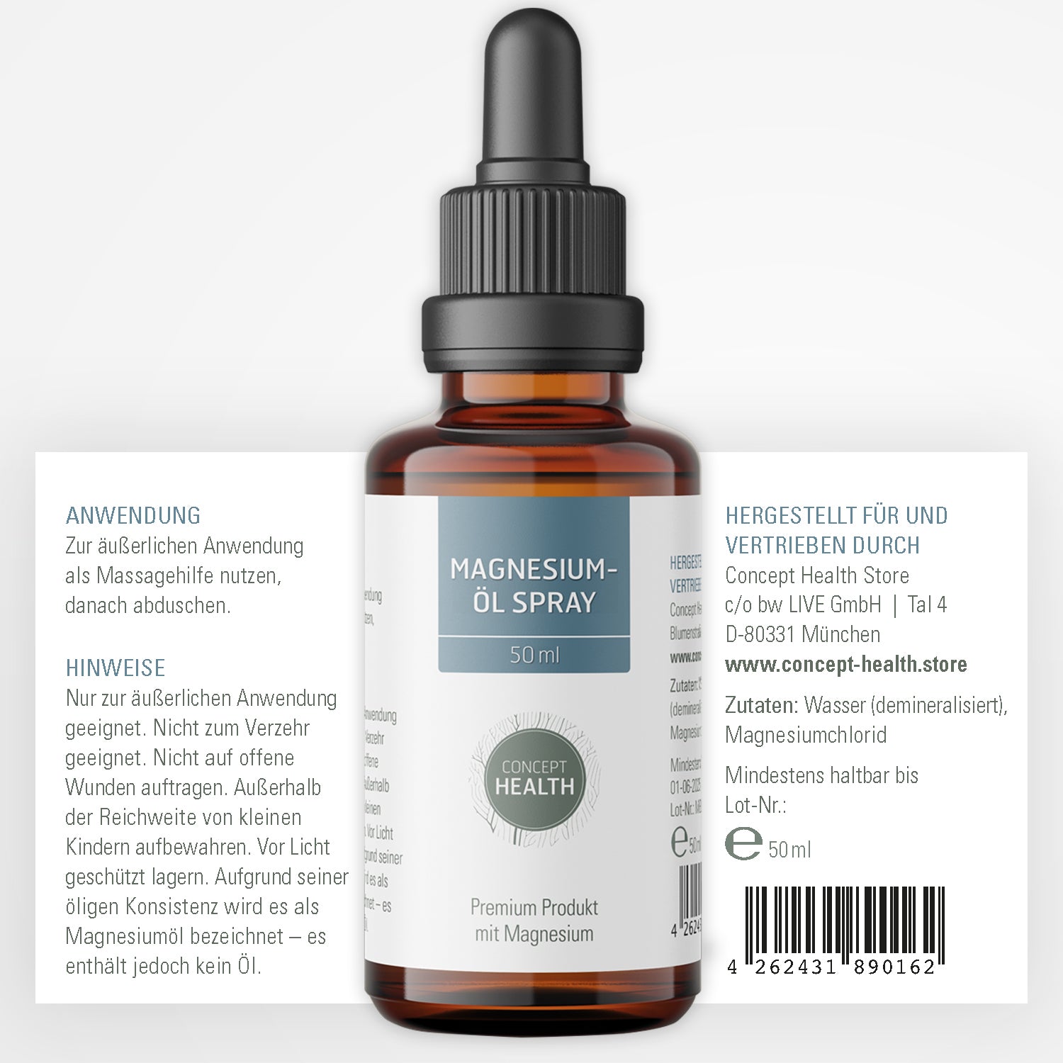 Das CONCEPT HEALTH Magnesium Öl Spray bietet eine intensive Pflegeformel mit Magnesiumchlorid-Salzlösung in Spray-Applikation. Es eignet sich zur gezielten äußerlichen Anwendung bei erhöhter Beanspruchung von Haut und Muskulatur – zum Beispiel nach sportlichen Aktivitäten oder im Rahmen der Hautpflege. Der Verzicht auf künstliche Zusatzstoffe sowie die vegane Ausrichtung unterstreichen den Anspruch einer hochwertigen, bewussten Körperpflege.