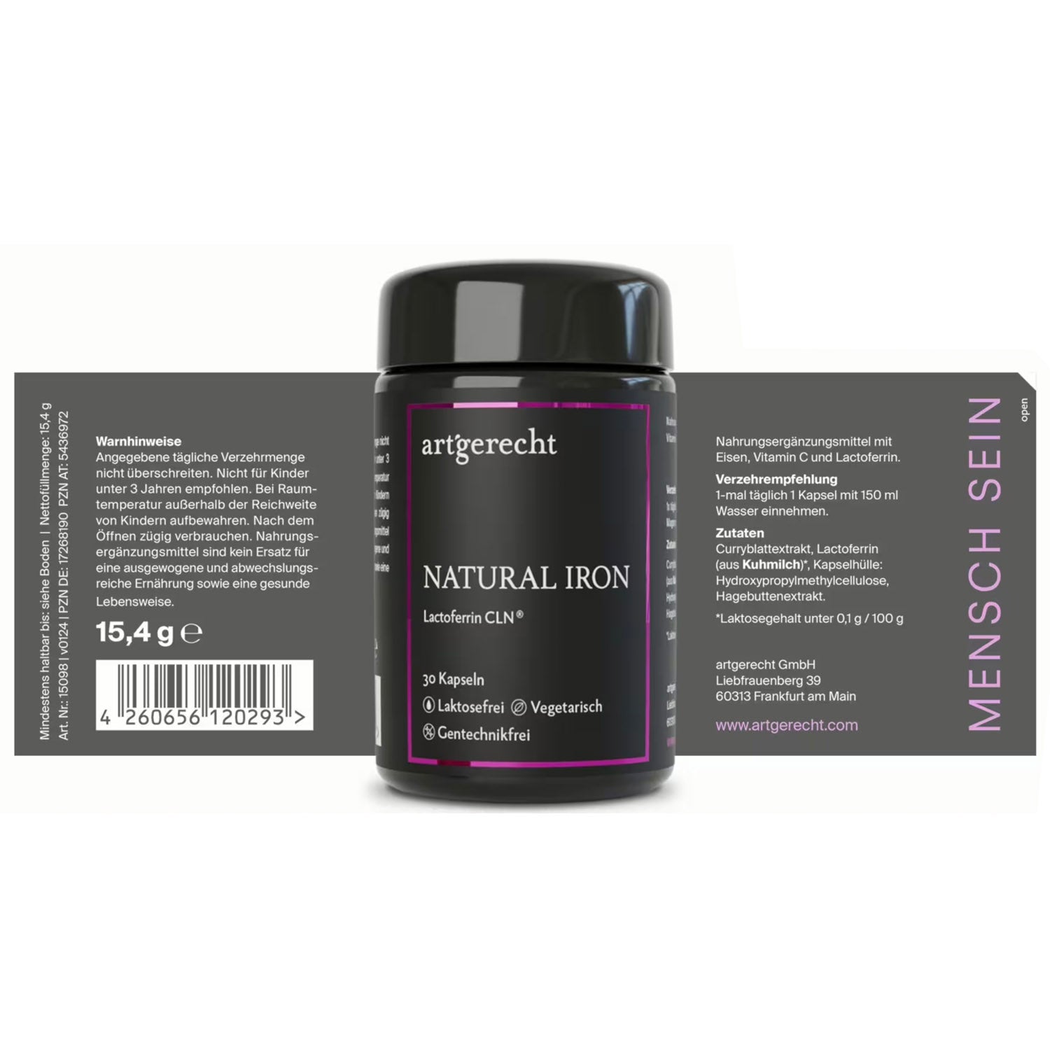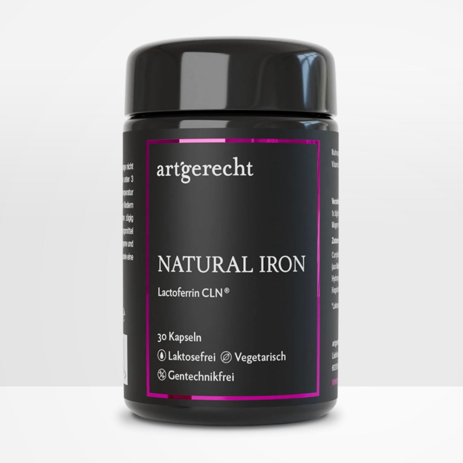 NATURAL IRON von art‘gerecht ist ein artgerechtes Eisenpräparat aus rein natürlichen Quellen. Die einzigartige Kombination aus pflanzlichem Curryblatt-Eisen, hochreinem Lactoferrin CLN® und natürlichem Vitamin C aus Hagebutte unterstützt eine optimale Eisenversorgung und trägt zur Verringerung von Müdigkeit sowie zu einer normalen Funktion des Immunsystems bei.