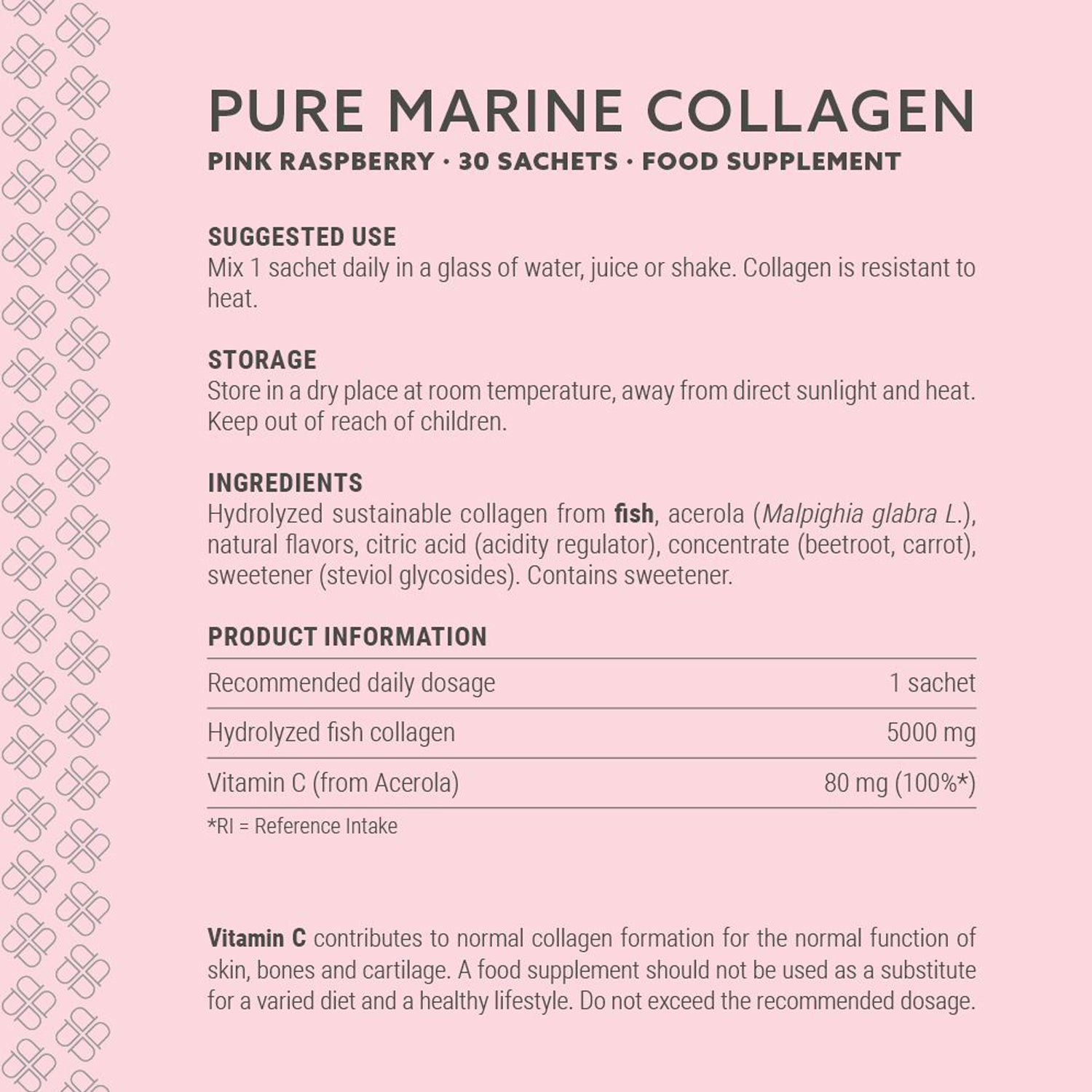Pure Marine Collagen enthält hydrolysiertes Fischkollagen vom Typ I – die im menschlichen Körper am häufigsten vorkommende Kollagenform. Es ist ein strukturelles Protein, das für die Elastizität, Festigkeit und Feuchtigkeitsbindung von Haut, Haaren, Nägeln und Bindegewebe verantwortlich ist.